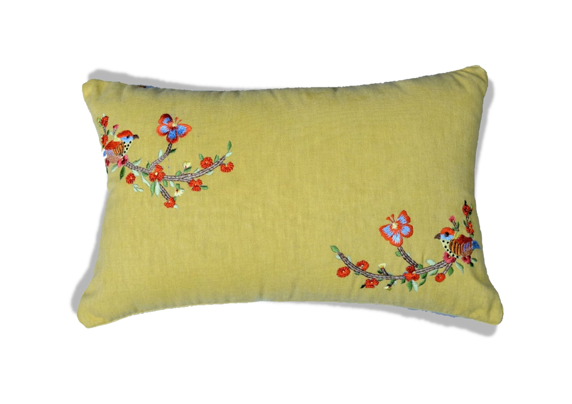 Introducing Bird of Paradise Hand-Embroidered Cushion, a stunning piece that brings the allure of nature into your living space. This exquisite cushion showcases the timeless beauty of nature's most vibrant and enchanting bird, the Bird of Paradise, meticulously hand-embroidered onto a luxurious fabric.