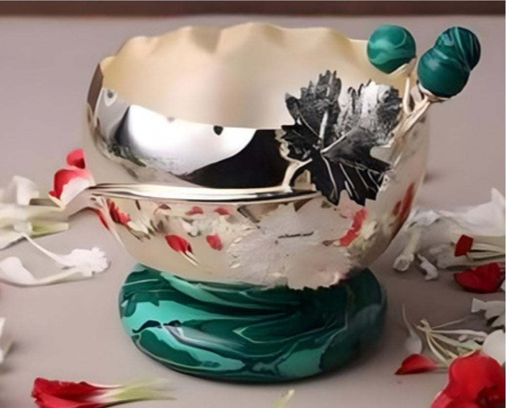 This elegant nut bowl on malachite offers a perfect blend of luxury and nature. The rich, vibrant green hues of malachite provide a stunning backdrop for this finely crafted bowl, making it an exquisite addition to any table setting. Ideal for serving snacks or as a decorative centerpiece, it exudes timeless sophistication.