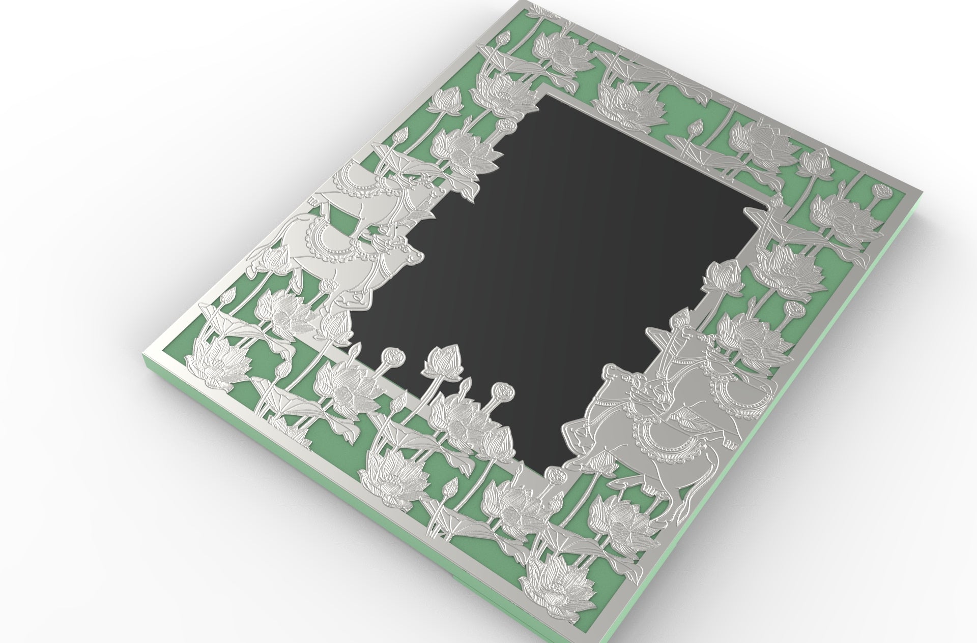 Celebrate the serene beauty of spirituality with this exquisite silver-plated frame featuring a cow and lotus leaf design. The sacred cow, symbolizing purity and abundance, is gracefully complemented by the lotus leaf, a timeless emblem of peace and enlightenment. Perfect for adorning your prayer room or gifting loved ones, this artistic masterpiece blends tradition with elegance, creating a divine aura wherever it is placed. A true tribute to India's rich cultural heritage!