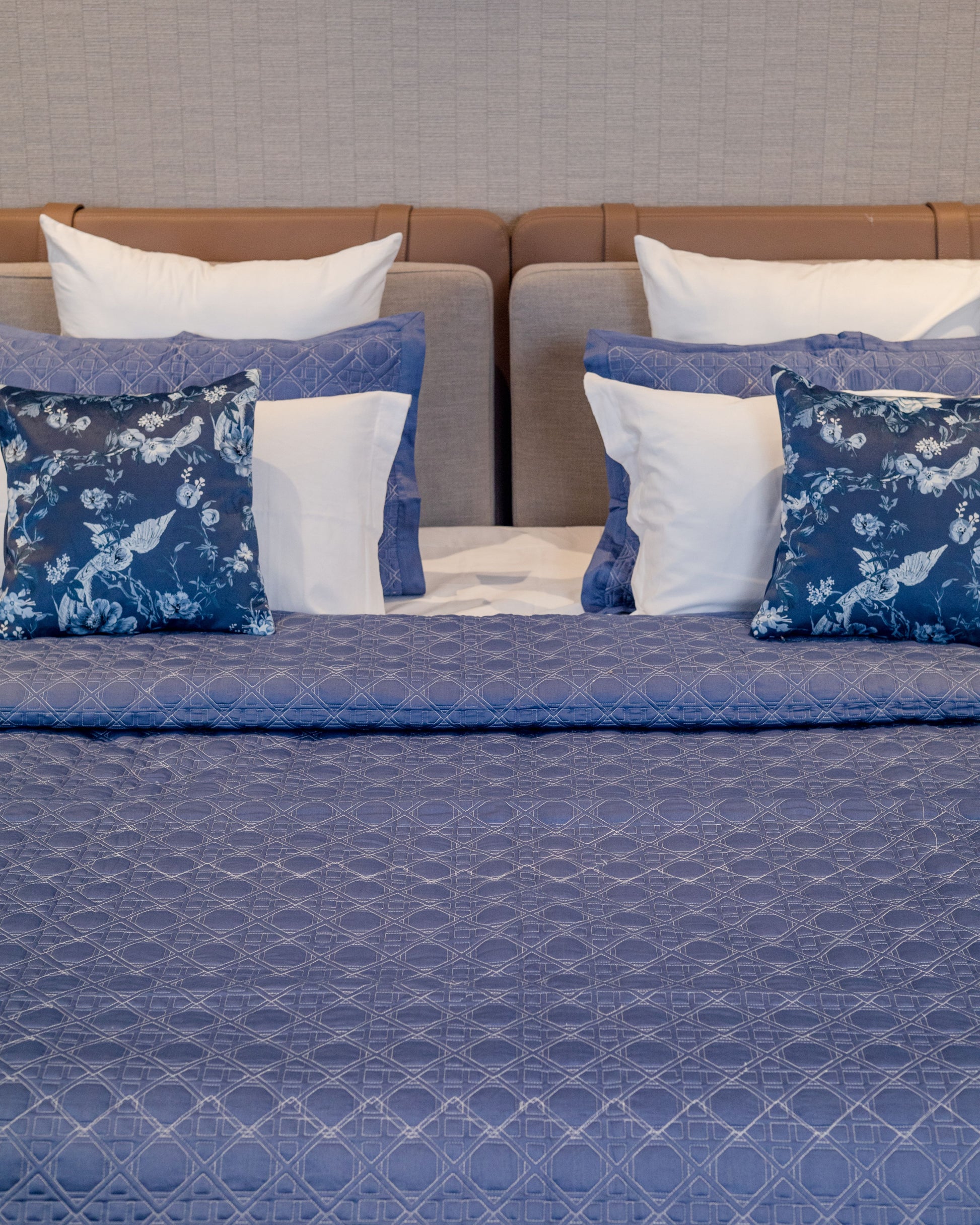 The bedspread is made from premium materials, ensuring a sumptuous feel against the skin. The quilted pattern is not only a testament to timeless design but also adds a subtle element of visual interest, enhancing the overall aesthetic of the bedroom.