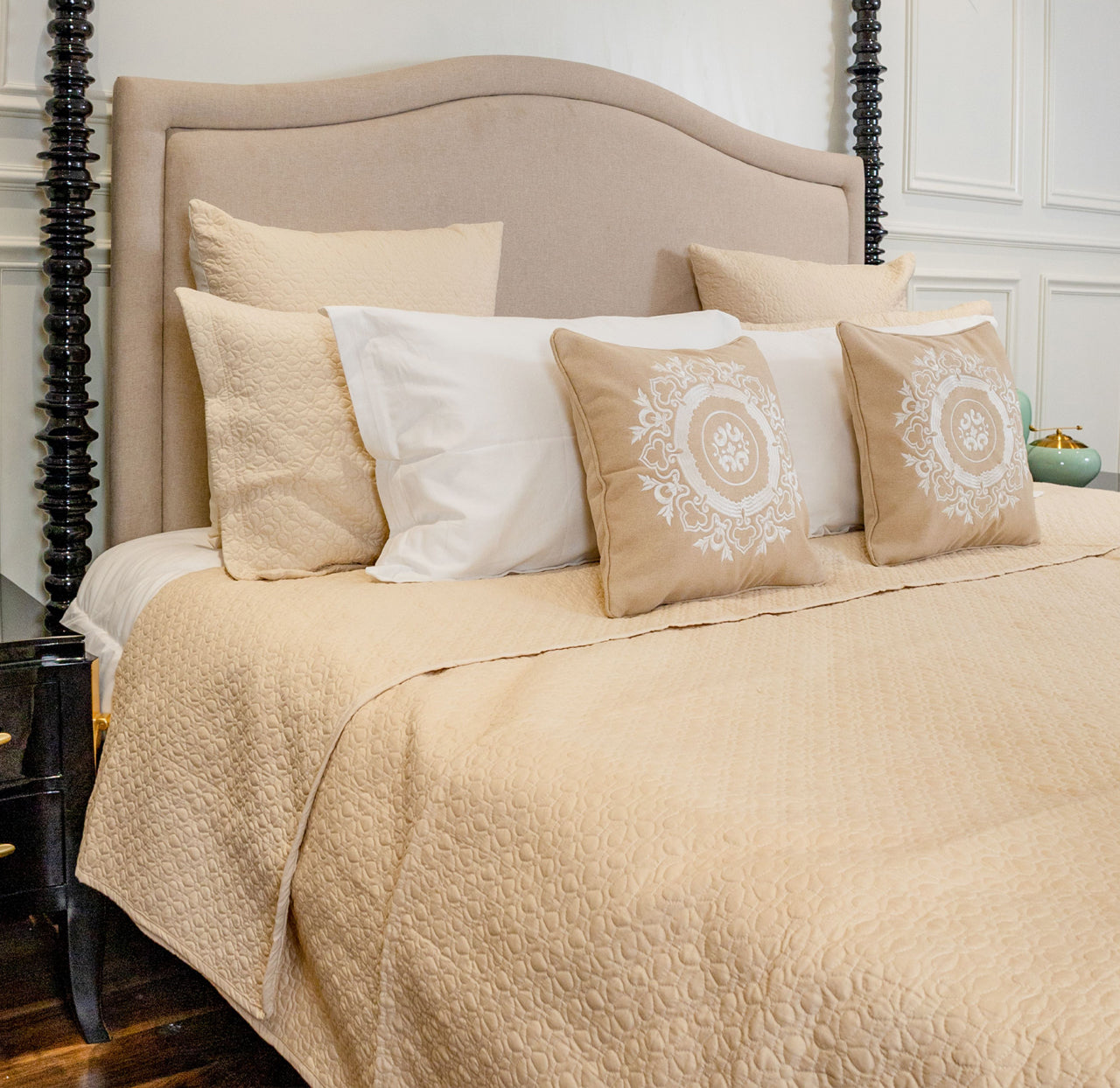 A: We use only the finest materials and craftsmanship to ensure that our luxury bedspreads and other products meet the highest standards of quality. We also offer a satisfaction guarantee to ensure that you are completely satisfied with your purchase.