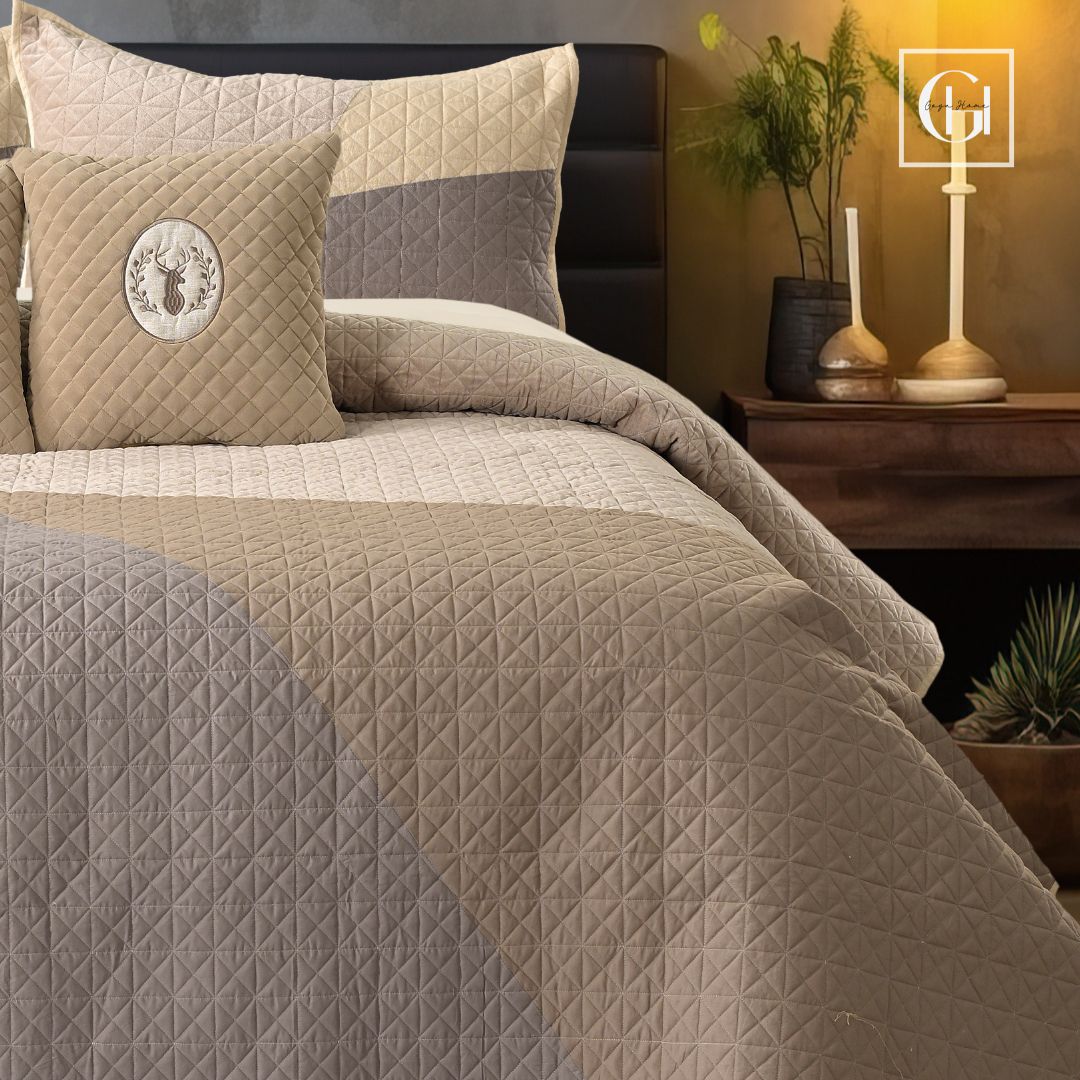 Experience the epitome of Italian luxury with our exquisite bedspread, featuring a harmonious blend of soft cotton and plush velvet patchwork. Meticulously crafted, this bedspread offers an elegant touch and unparalleled comfort, transforming your bedroom into a sanctuary of style and sophistication.