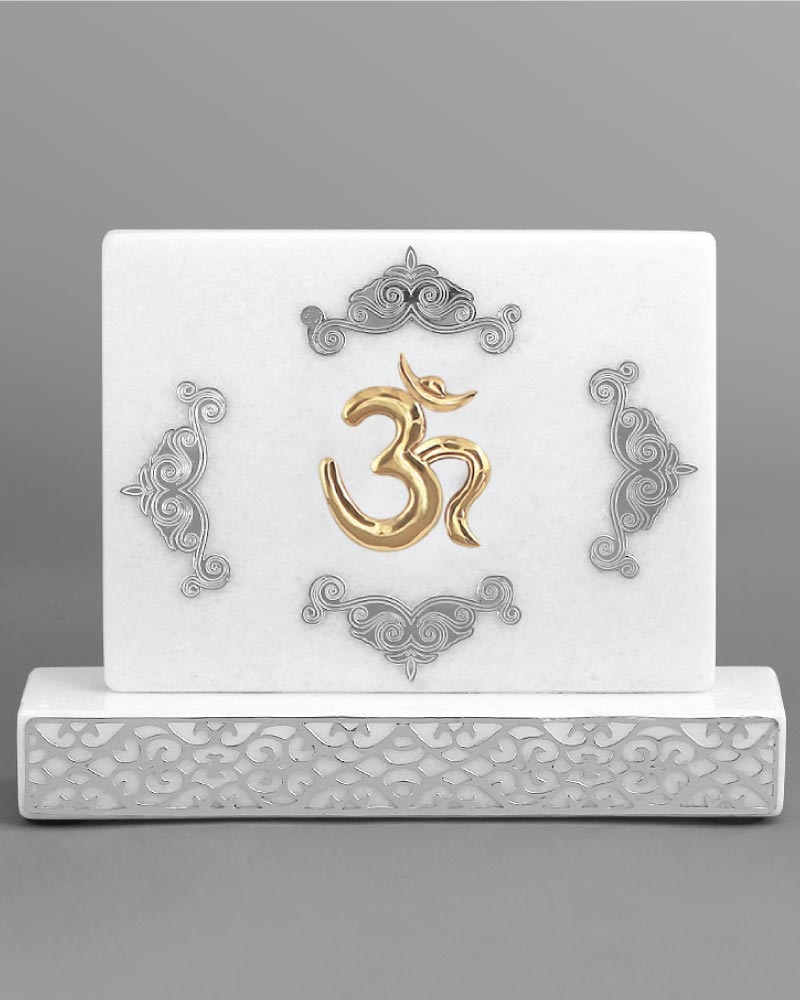 OM- The most powerful sound in the universe empowers you to connect with your true self. Symbolism and craft go hand and hand in all our creations. Designed and crafted using natural white stone and 925 silver .